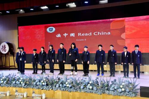 伴随着一首铿锵有力的《读中国》诗文朗诵,本次活动正式开场。六年级的同学们以诗词与文学为媒介,向观众展示了中华文化的博大精深。朗诵不仅让大家感受到语言的魅力,也让学生们从中汲取了文化的力量,树立了自信与自豪感。