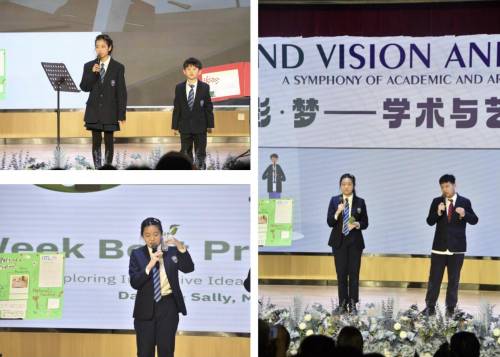 在《我们就是主角》学术展示环节,MYP的同学们通过科学实验、艺术创作、社会调研、历史探究等多种形式的作品,生动诠释了如何将课堂所学融入生活实践。其中,G6年级的Jacky同学分享道,通过IB学习,他更深刻地理解了批判性思维的含义。批判性思维不仅仅是看待问题时采取的不同视角,更重要的是培养面临挑战不怕困难,勇于思考的心态。因为学术上的进步首先源于主动并大胆地投入学习与反思。