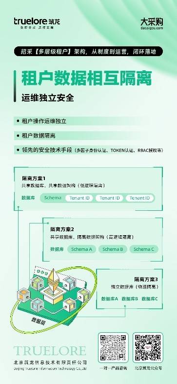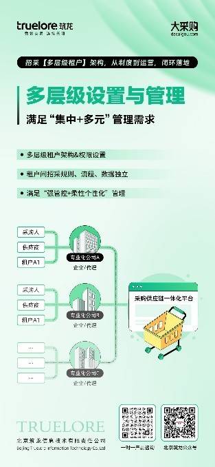 北京筑龙大采购B-PaaS提供的「多层级租户」架构具备:多层级招采制度管理、权限配置、数据共享与隔离、安全运维等关键要素。还支持“云+私”一体的部署方式,满足“即开即用”“信创安全”等不同的招采管理需求。