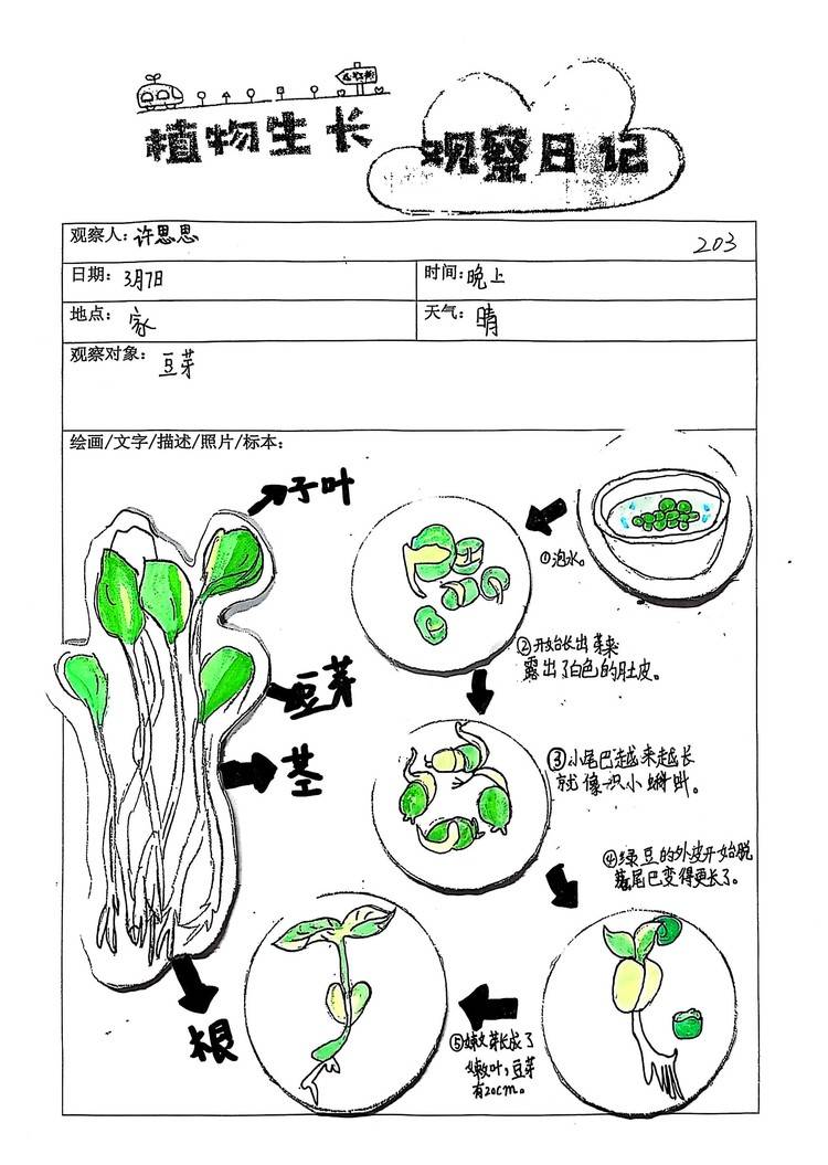 3月,同学们积极参与绿植生长观察日记活动。他们精心养护自己的绿植,仔细记录浇水情况,认真观察植物的每一点生长变化。有的同学用文字详细描述植物的状态,有的则用简单可爱的简笔画描绘出绿植的模样。在这个过程中,同学们不仅学会了照顾植物,更深刻感受到生命的神奇与脆弱,进一步增强了对大自然的敬畏之心。