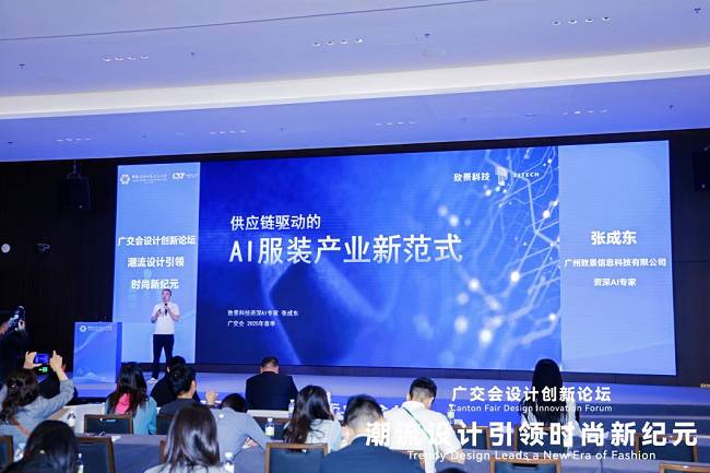 致景科技受邀参加本次论坛,致景科技资深AI专家张成东以《供应链驱动的AI服装设计》为主题发表演讲,探讨人工智能时代下如何用AI重构时尚产业价值链新范式。