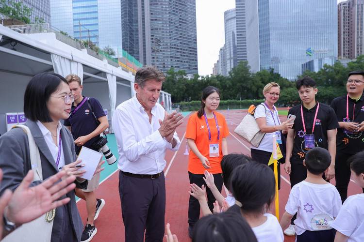 世界田联主席塞巴斯蒂安·科为孩子们加油打气