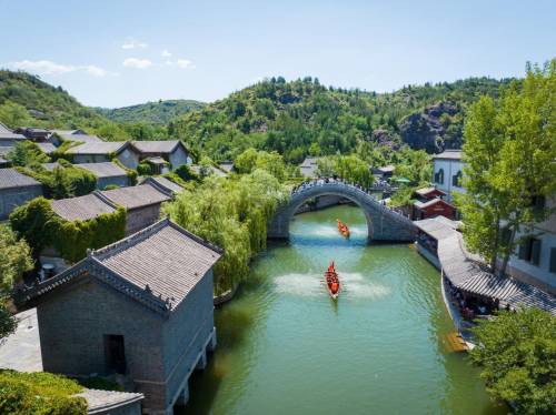 古北水镇深挖端午文化内涵,将端午传统习俗转化为沉浸式体验场景。设置包粽子区域及“吃粽子大赛”,让游客在欢笑中感受节令食俗的仪式感。依托汤河蜿蜒水系与司马台长城雄姿,龙舟拔河赛上演力量与团队协作,呐喊声与水花声交织,演绎端午节的动感新篇。
