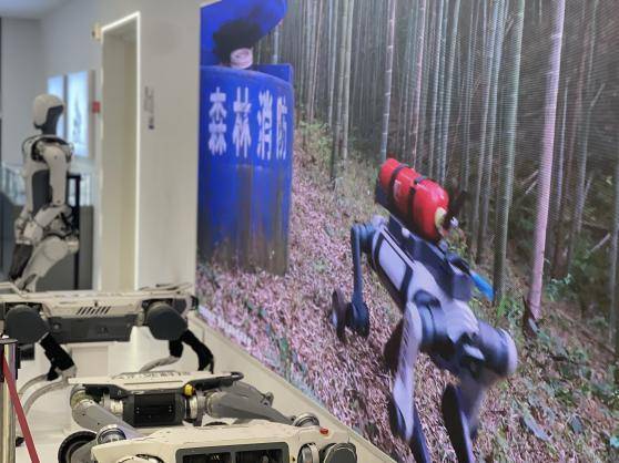 来到云深处科技有限公司的展厅,首先映入眼帘的是一排充满科技感和未来感的机器狗和机器人。