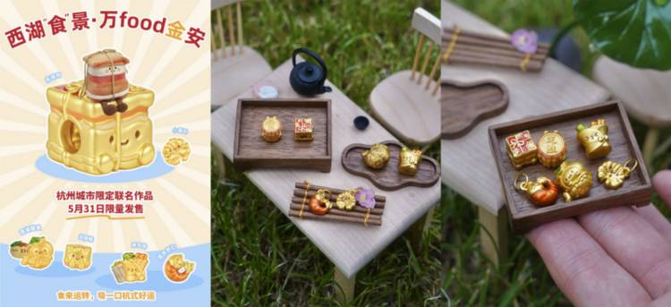 曼卡龙珠宝以匠心工艺重新诠释杭州美食文化,此次与德寿宫联合推出的"西湖食景"系列黄金转运珠,首次将杭州美食转化为可佩戴的文化符号,在方寸之间完美呈现杭城代表美食——东坡肉、定胜糕、西湖醋鱼、龙井虾仁、葱包烩。该系列开创性地将地方美食、传统文化与现代珠宝工艺三位一体融合,不仅是对杭州城市文化的创新表达,更是黄金饰品年轻化、时尚化转型的典范之作。