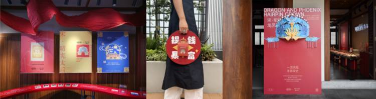 •联名主题空间:店内整体视觉系统全新升级,以"宫墙红"与"金箔黄"为主色调,通过联名产品海报、主题陈列等,全方位烘托联名氛围。