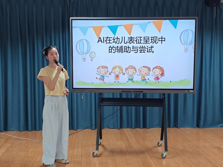 随后,章文怡老师和袁艺老师结合工作实际向大家介绍了AI在教学、论文、游戏等多个领域的运用,并对AI在学前教育应用的的主要方向及潜在挑战进行深度解析。为提升教师创造力,为儿童发展、教学创新和家园共育提供全新可能性。