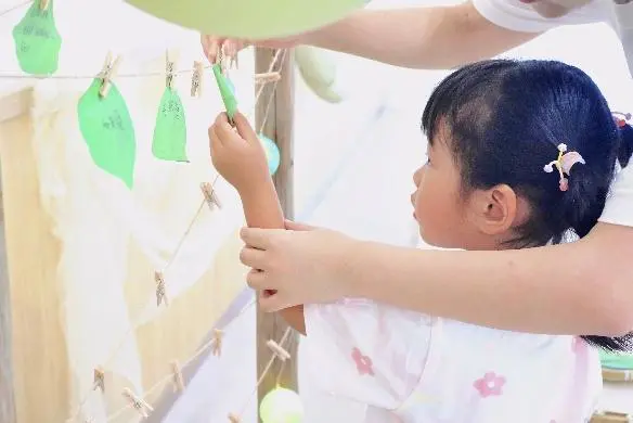 大班的哥哥姐姐,来写下新学期的心愿吧!一张张榉树形便利贴上,用马克笔画满了“想学会跳绳”“要认识更多朋友”的小心愿,挂在麻绳上连成了一串满是期待的“心愿链”。这些写下的心愿已成为孩子们新学期的 “小目标”,将一路陪伴大家快乐成长、慢慢实现。