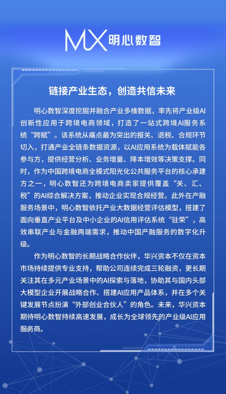 通过以上明星案例,这些企业共同构建了“AI+产业”落地的生动样本,也映射出华兴在推动AI与产业结合领域的系统布局和深度参与。