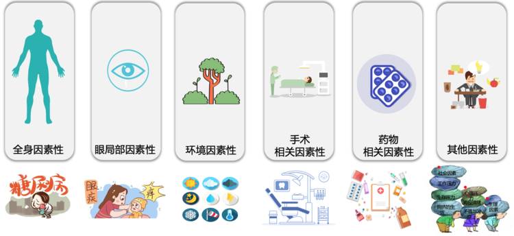 ●致病因素:环境干燥、长时间用眼、年龄增长、自身免疫疾病等;