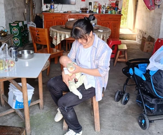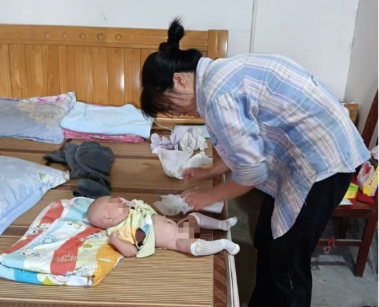 就在这个脆弱的新生命面临生存危机时,邻居汤连香毫不犹豫地伸出了援手。每当夜深人静时,婴儿撕心裂肺的啼哭声总会刺破岭脑村的宁静。那声音像一把钝刀,一下下剜着汤连香的心。“当我看到孩子哭得小脸通红,爷爷又手足无措的样子,我的心一下子就揪起来了,就在那一刻,我脑海里突然闪过一个念头——这孩子,我得带回家!”汤连香回忆道。