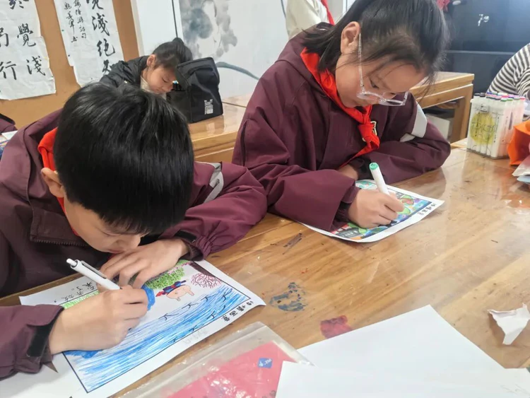 义蓬二小运用AI谱曲技术,已完成100余首诗歌的音乐化转化,其“盐仓诗班”的原创节目《月亮去哪儿了》不仅成为校园文化活动的保留节目,更登上中俄文化交流国际舞台。此外,校诗歌社“盐仓诗班”的19首原创诗歌在《西湖·文学少年读本》公开发表,还有学生的作品在《星星》诗刊等发表并获奖。校园内的“诗韵长廊”,则将优秀童诗配乡村插画展出,让语言教育扎根乡土校园,兼具审美。