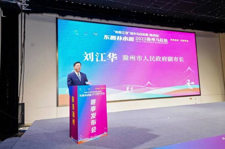 会上,滁州市人民政府副市长刘江华致欢迎辞,向莅临发布会的各位领导嘉宾、媒体和跑团朋友们表示热烈欢迎。他表示,滁州市坚持以赛聚人、以赛促产、以赛兴城,全民健身热潮涌动、竞技体育捷报频传、体育产业活力四射。东鹏补水啦2025滁州马拉松将呈现一场高水平、有特色、精彩圆满的体育盛会,充分展示新阶段现代化新滁州的崭新形象。