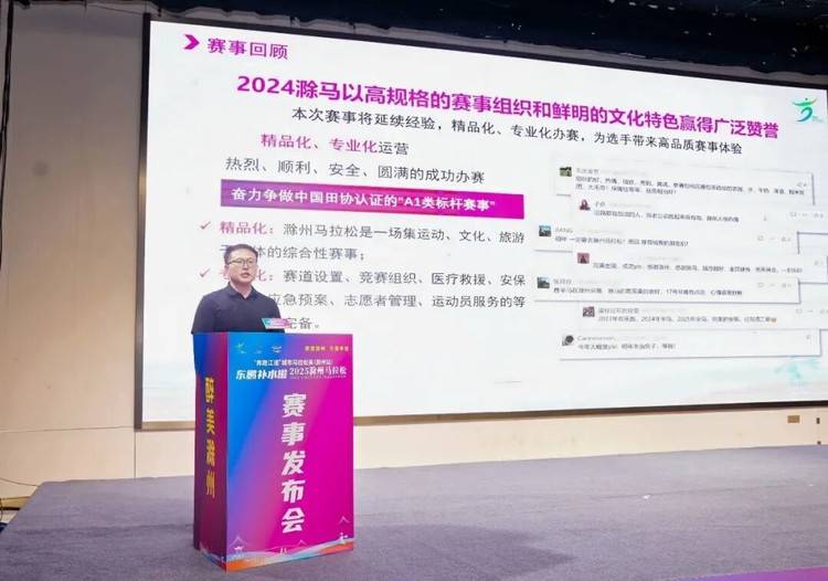 滁州市教育体育局局长付俊现场发布了东鹏补水啦2025滁州马拉松赛事基本信息及赛事亮点。