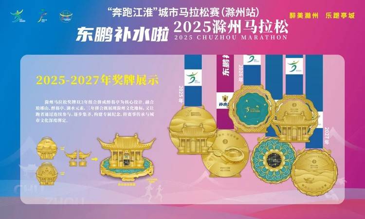 滁马推出以“醉翁亭”为核心元素的三年系列完赛奖牌,融合琅琊山、醉翁亭、湖水元素,可拆卸、重组,增强趣味性与收藏价值,进一步突显滁州“亭城”文化符号。