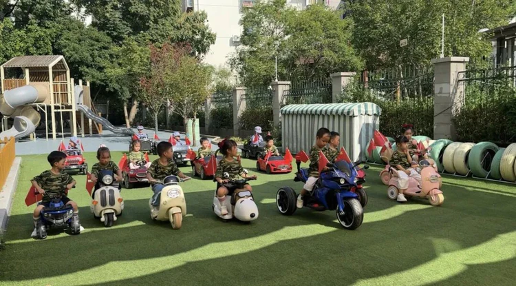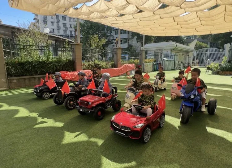 国庆前夕,杭州市京都实验幼托园流水园区的草坪上一群身着军装的萌娃驾驶着“豪华童车方阵”,上演了一场萌翻全场的“迷你阅兵式”,为祖国76周年华诞献上最童真的硬核祝福!黑色“越野战车”插着鲜艳国旗,小“战士”们头戴红星帽,举手敬礼的模样有模有样。