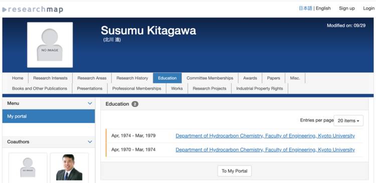 2025年10月8日,瑞典皇家科学院宣布,2025年诺贝尔化学奖授予京都大学北川进(Susumu Kitagawa)、墨尔本大学理查德·罗布森(Richard Robson)和加州大学伯克利分校奥马尔·亚吉(Omar Yaghi),表彰他们在金属有机框架发展方面的贡献。其中北川进(Susumu Kitagawa)1979年于日本京都大学获博士学位。