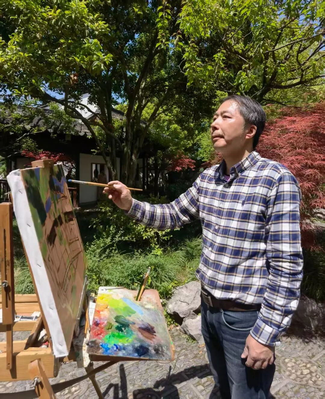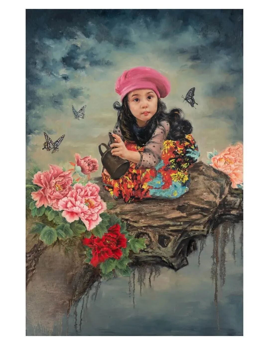 职业画家,现居杭州。作品以儿童、猫咪等题材为主,融合中西技法的写实油画作品,将传统山水,园林,花鸟野兽等元素融入肖像背景,强调“平衡、纯粹、宁静”,传递童真与岁月静好之感,形成了独特的风格。