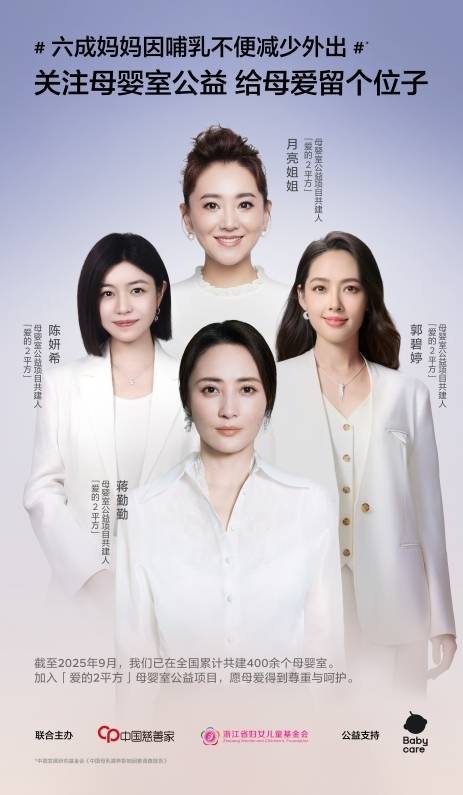 10月16日,#六成妈妈因哺乳不便减少外出#话题冲上热搜,引发社会热议,截至发稿,阅读量破1.5亿。知名演员蒋勤勤、郭碧婷、陈妍希,以及央视著名主持人月亮姐姐等众多明星联合《中国慈善家》杂志、浙江省妇女儿童基金会以及母婴头部品牌 Babycare共同发声呼吁:“关注母婴室公益、给母爱留个位子”。此外,多位奥运冠军、行业专家等社会知名人士都参与发声