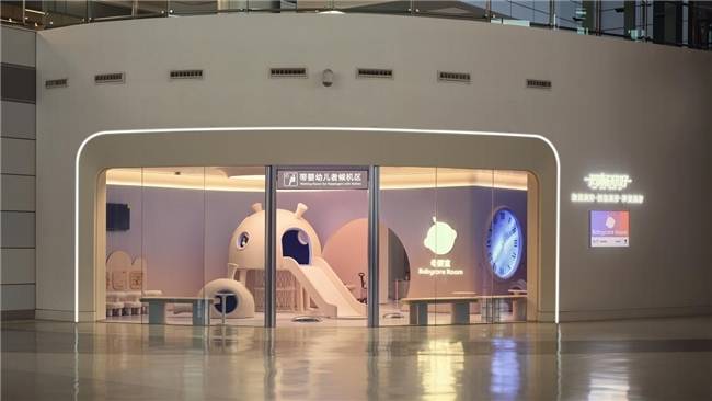 今年10月,郑州新郑国际机场投入运营以来最大的一间母婴室正式落成。区别于常见的“标准化”设置,这间150多平方的超大母婴室对传统布局进行了重构,划分了玩乐、护理、喂食、哺乳等功能区,打破传统的粉色卡通色系,创新性采用科幻的中性色,以空间语言消除“性别”界限,同时凭借科学的设计,让爸爸自在进入的同时,也充分保护了哺乳妈妈的隐私;并专门辟出一间家庭哺乳间。这一历时7个多月的改造背后,是Babycare对母婴室的重新设计。