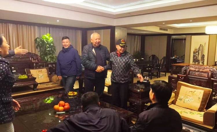 捐赠现场宛如一场跨文化的艺术沙龙。中熵世融集团董事长何丕正、副总经理崔嵬与包先生等嘉宾围坐畅谈,大家从画作笔触谈到中吉合作前景,从艺术灵感谈到民间情谊,话题天南海北,欢声笑语间,又因周总理特型演员的惊喜亮相而增添了几分历史趣味。特型演员一句“这军装让我想起周总理的飒爽英姿”,瞬间拉近了时空距离,引得众人会心一笑。
