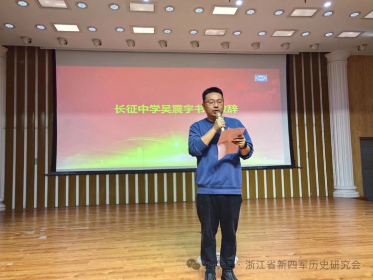 为纪念中国人民抗日战争暨世界反法西斯战争胜利80 周年,加强青少年革命理想和革命传统教育,浙江省新四军历史研究会组织开展的“弘扬抗战精神”主题演讲比赛近日圆满落幕。10月26日,颁奖大会在杭州长征中学隆重举行。省新四军历史研究会常务副会长宋光宝、长征中学党总支书记吴震宇、杭州市新研会会长顾玉龙等领导,以及来自省会直属机构、各市新研会和部分县市(区)新研会的领导等140余人参加了会议。