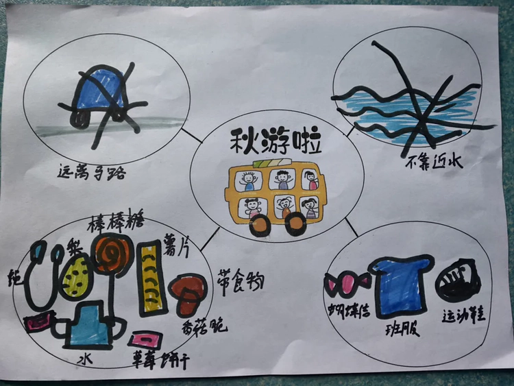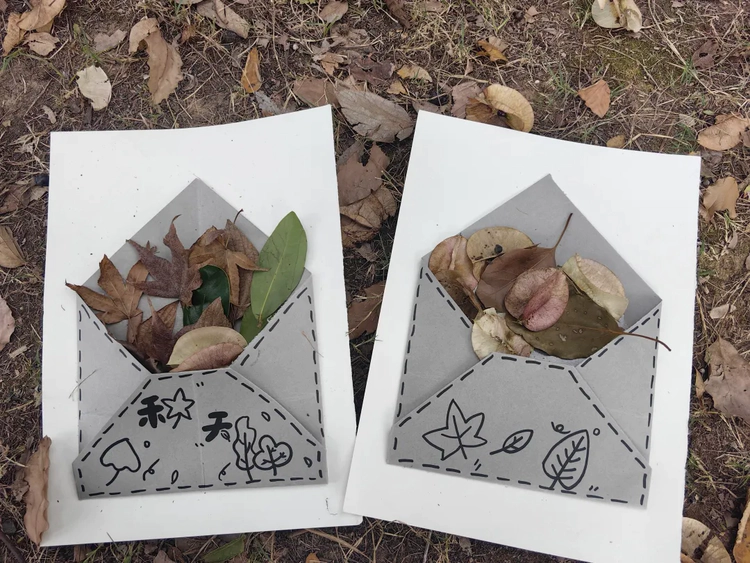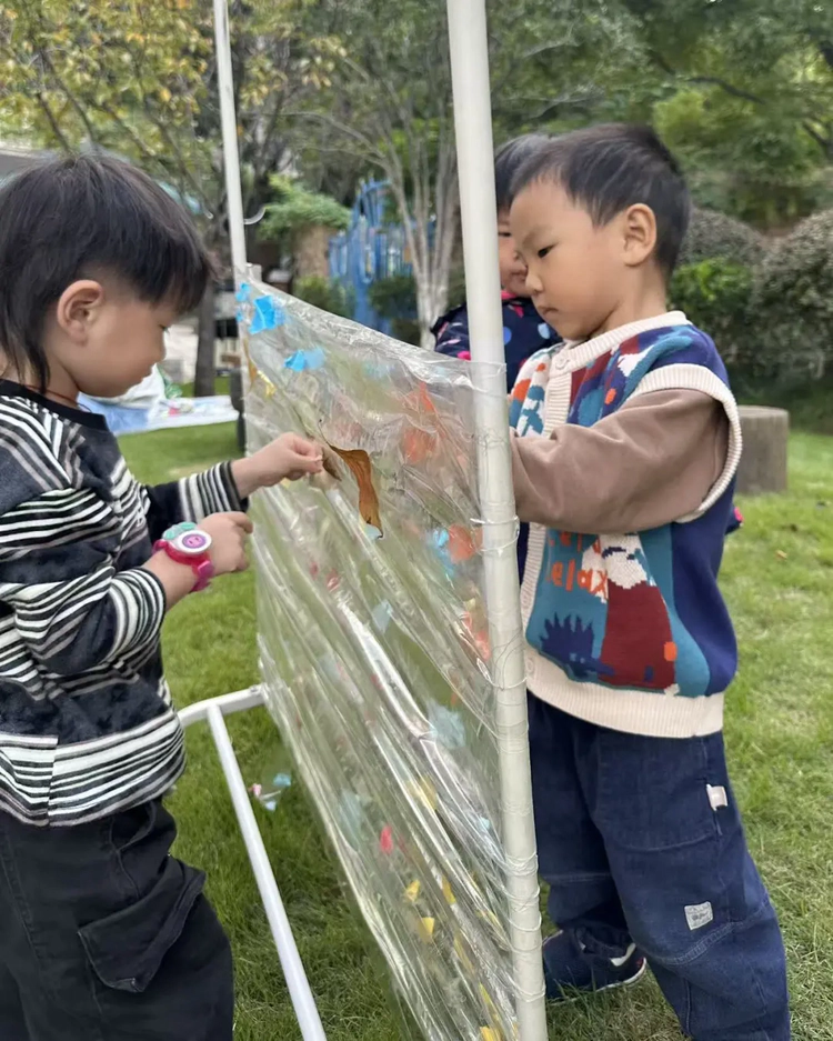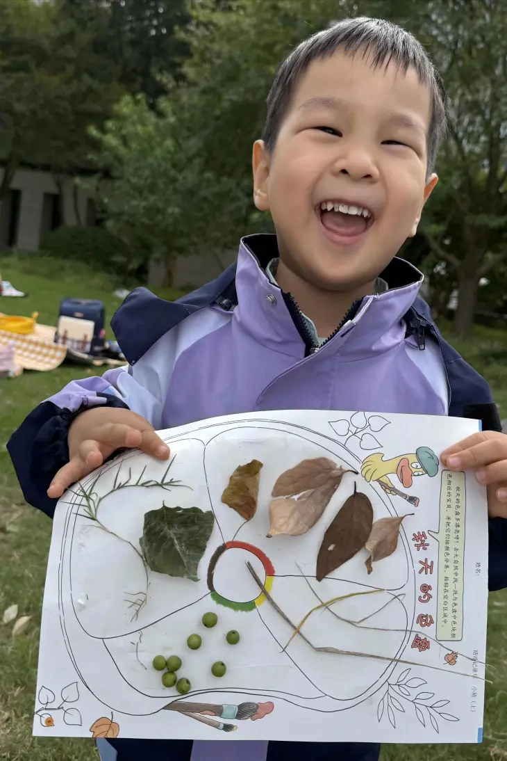 秋天是红色,是黄色,是绿色的……小朋友们用自然元素装点出独属于自己的秋日色彩。