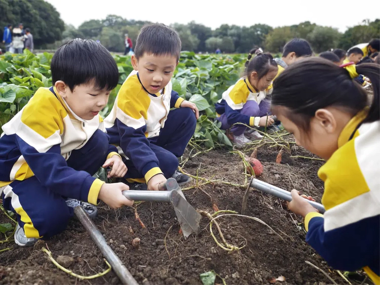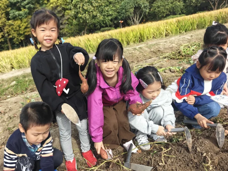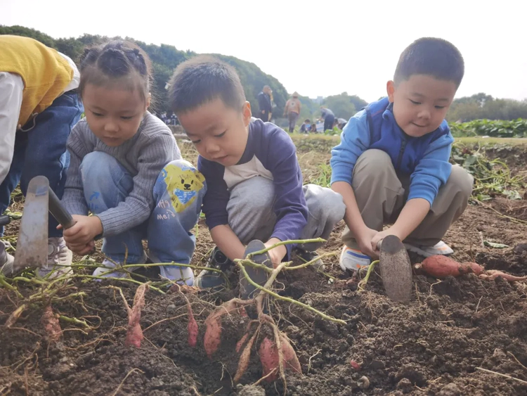 小伢儿们化身“小农夫”,在田间开启挖红薯的趣味农耕体验,他们挥舞小铲子、扒开泥土,当一个个胖乎乎的红薯从土里探出头来时,惊叹声此起彼伏,在亲手劳作过程中,真切感受农耕的快乐与收获的喜悦。