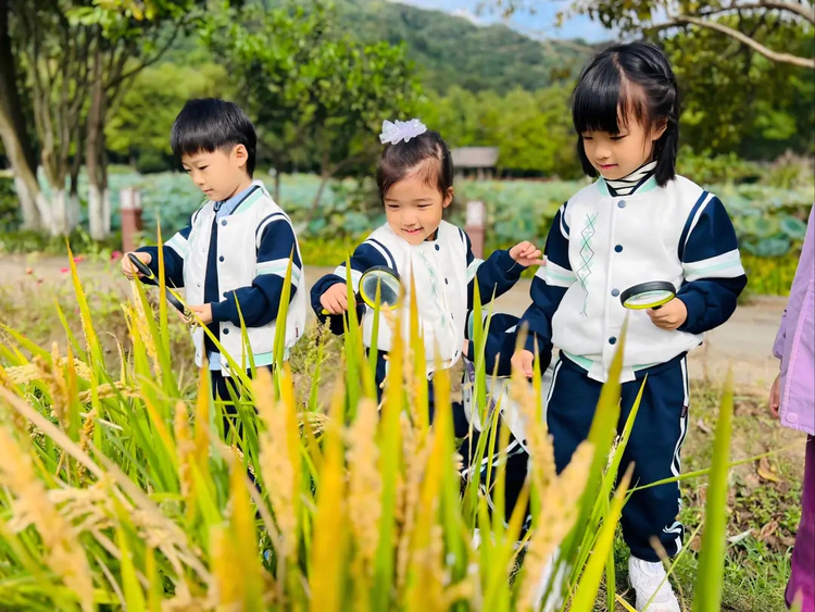 小朋友们手持放大镜,专注观察,轻触稻穗,探秘稻谷生长的秘密,感受农耕的奇妙,那认真的模样,是对自然最纯真的好奇。