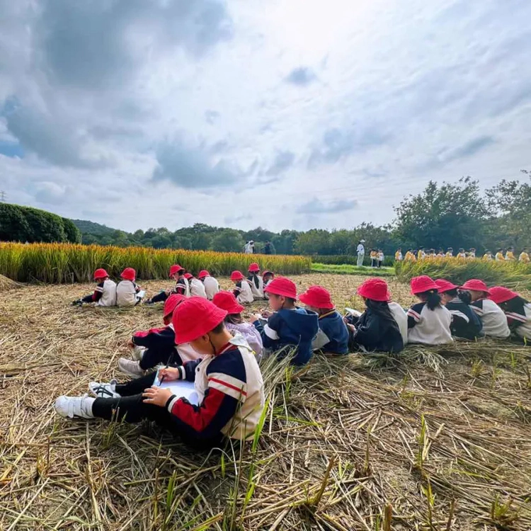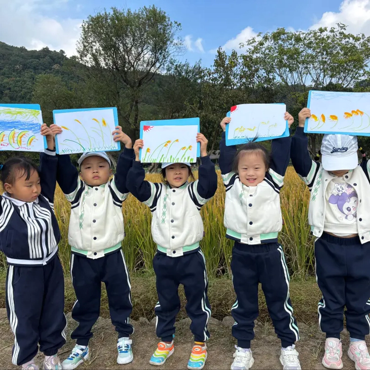 以八卦田稻田为景,小朋友们静坐写生。金黄稻穗、摇曳稻秆跃然纸上,既锻炼了幼儿的观察与绘画能力,更将丰收美景定格为童年记忆。