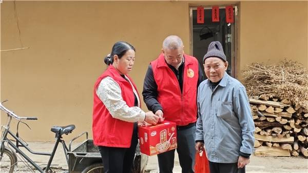 活动当天,志愿者们带着香甜软糯的八宝粥、热气腾腾的煎果子等慰问品,首先来到下石上组的老党员宋兰英家中。今年89岁的宋兰英有着60余年党龄,曾为村里的发展默默奉献,平日里也是积极配合村里的工作。志愿者们与她促膝长谈,仔细询问她的身体状况和日常生活需求,感谢她多年来为党组织和村里作出的贡献,并叮嘱她保重身体,有困难及时向村里反映。宋兰英握着志愿者的手,感动地说:“我都帮不上村里什么忙,非常谢谢村里一直惦记着我,就算不过节也是时不时会来我这陪我聊聊天,时刻关心我的身体状况和生活情况。”