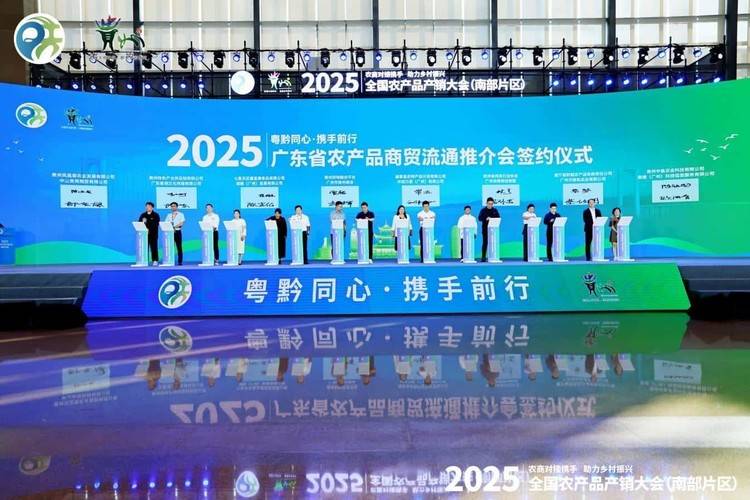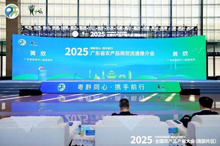 10月17-19日,由中华人民共和国商务部主办,商务部流通产业促进中心、贵州省商务厅等承办,以"农商对接携手助力乡村振兴"为主题的2025年全国农产品产销大会(南部片区)在贵阳市举办。为充分发挥广东特色和优势,进一步增强粤港澳大湾区辐射带动作用,推进东西部协作工作开展。广东省商务厅组织广东经贸代表团参加本届"产销大会"。广州、深圳、珠海、佛山、惠州、东莞、中山、江门、肇庆、广东省贵州商会(联盟)、等12个分团近185家企业500多人参会参展。