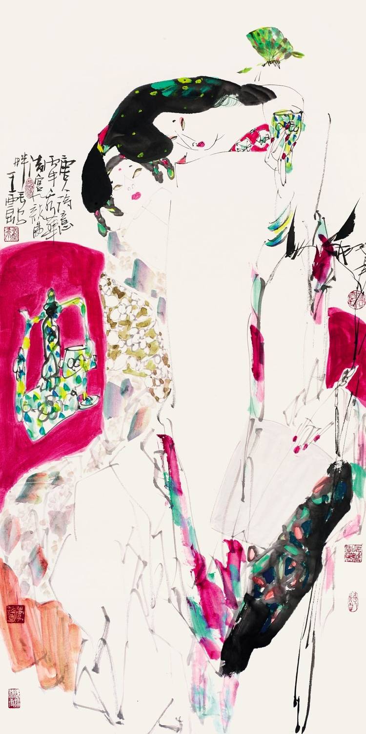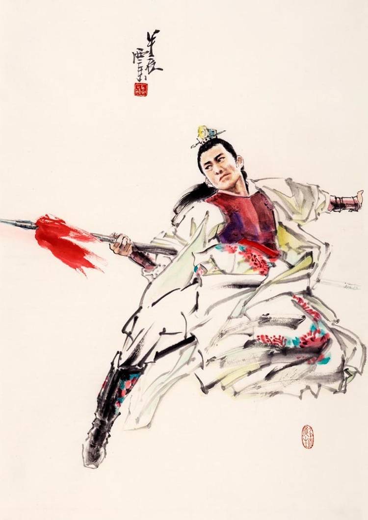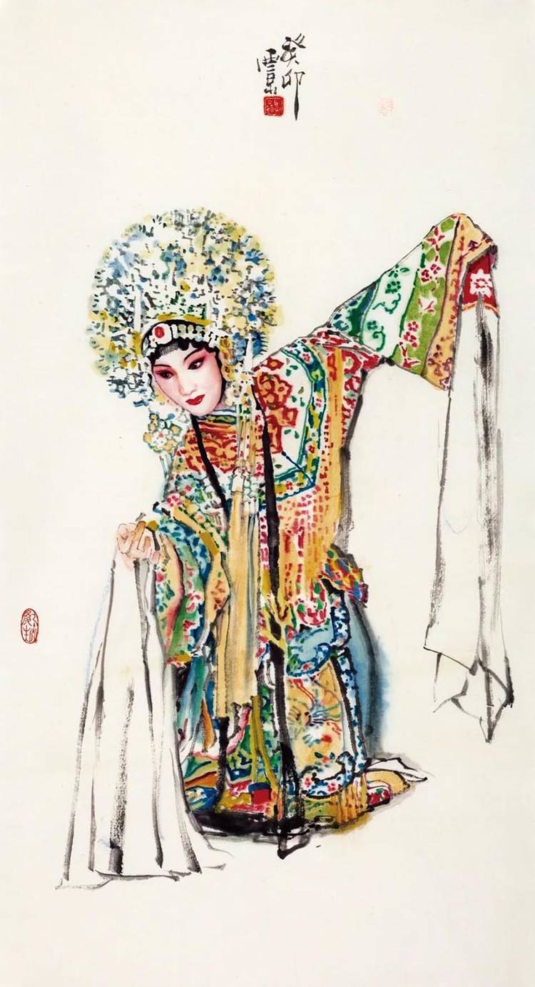 在艺术之路上,他是永不停歇的攀登者。无论是人物肖像的形神交融,还是历史题材的宏阔叙事,他的笔墨间始终流淌着民族文化的血脉与时代的脉动。八十岁的他,未选择安逸回望过往成就,而是以“再出发”的姿态探索笔墨新语言,尝试更具当代性的表达。其“舞韵”“梨园”“武林”系列,及新近创作的“云裳”系列,正是他艺术生命丰盈的明证,更是 “八十而立”后新征程的注脚。这份不老的艺术心性,让他的创作依旧饱含锋芒与生命力。