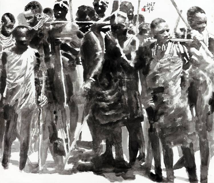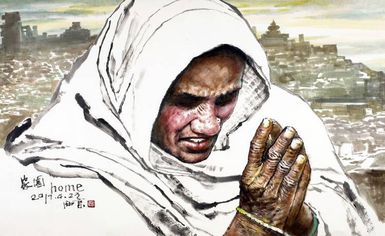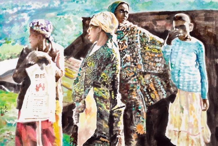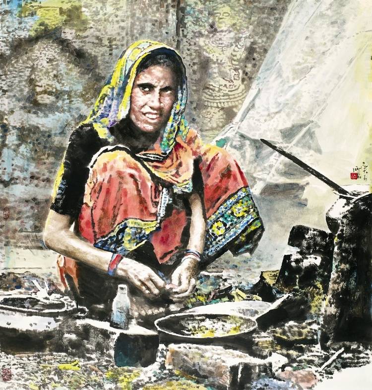 “一带一路”国家战略如浩荡东风,吹绿了沿线各国的希望田野。王西京再次展现出他超人的时代敏锐度,带领团队多次走进非洲、印度、希腊、意大利、伊朗、哈萨克斯坦、土耳其、丹麦、叙利亚等国家,关注人类共同命运,创作了一系列跨越东西方艺术的丝路风情人物画。如《土耳其之父》《和平世界》《非洲劳工》等作品赢得了当地民众的深情赞誉;《盼归》《何以为家》《家园》等作品表现了难民对和平的渴望和重建家园的愿景;《水屋》《童年》《取水之路》等作品反映了沿线贫困地区人们的生存状态。