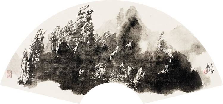 3702(山水小品系列之三)界山云起扇面2016
