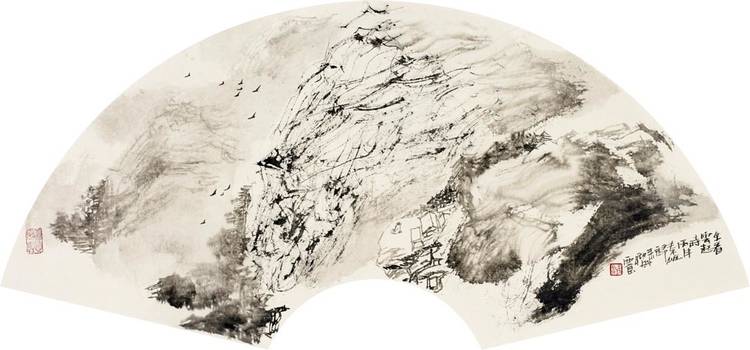 3702(山水小品系列之四)界山云起扇面2016