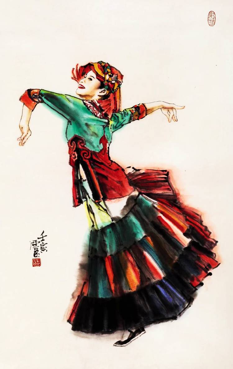 王西京的舞蹈人物画坚守民族绘画的本质特点,发挥中国传统艺术的写意精神,用明朗爽快的线条和墨色混融表现人们的阳光与激情,同时借鉴西方绘画的造型手法,再铸了中国舞蹈人物画的新高度。从古典舞的轻盈优雅、敦煌飞天的超凡脱俗,到民族舞蹈的热情奔放,他笔下的舞者仿若被注入灵魂,随时可能跃入现实世界,极富现代感和当代审美观,将舞蹈人物画研究推进到一个新的领域。