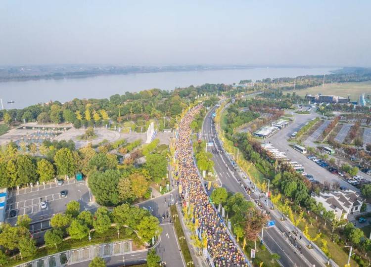 21.0975公里的赛道,本身就是一幅铺陈于长江生态廊道上的诗意画卷。选手们从采石矶景区北广场出发,一路途经滨江文化公园、薛家洼生态园、小九华寺等标志性景观,将浩荡江景与生态美景尽收眼底。