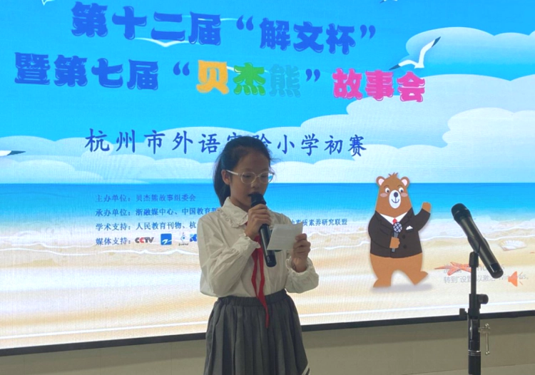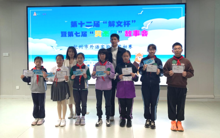 经过近四个小时的激烈角逐,评委团严格围绕“故事内容贴合主题、语言表达流畅生动、舞台表现自信大方”等维度进行综合打分,最终确定晋级选手,他们将代表杭州市外语实验小学,出征11月8日至30日举行的市级复赛。
