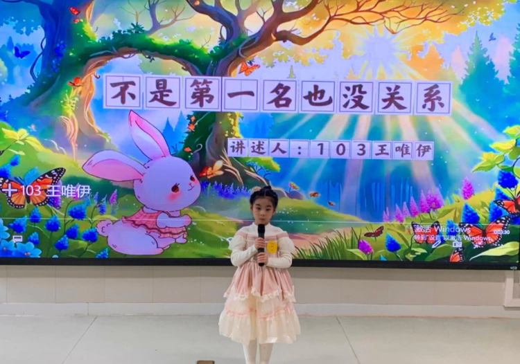赛场上,来自全校六个年级的36名小选手精神抖擞、自信登台,上演了一场精彩纷呈的故事盛宴。低年级同学以稚嫩纯粹的声音,生动讲述《妈妈的魔法口袋》《不是第一名也没关系》等充满童趣与温情的故事,用童真视角传递积极向上的成长理念。