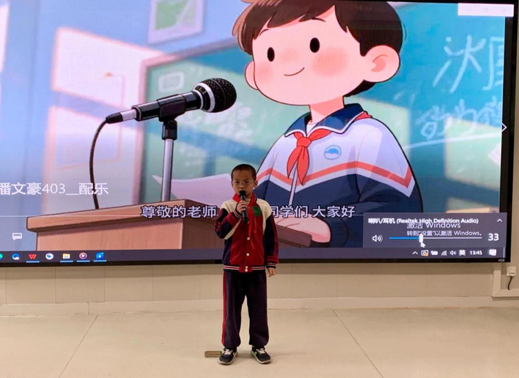 比赛当日中午12点起,工作人员与各年级大队委便全员到岗,全力开展设备调试、场地布置、选手引导等收尾工作,以细致筹备为活动顺利开启筑牢基础。活动流程清晰规范,按年级分时段有序进行:三年级选手率先登场,用活力开启赛事序幕;随后二、一年级小选手依次亮相,展现童真风采;四、五、六年级的压轴角逐则凭借深厚的表达功底,将现场气氛一次次推向高潮,充分彰显了学校出色的组织协调能力。