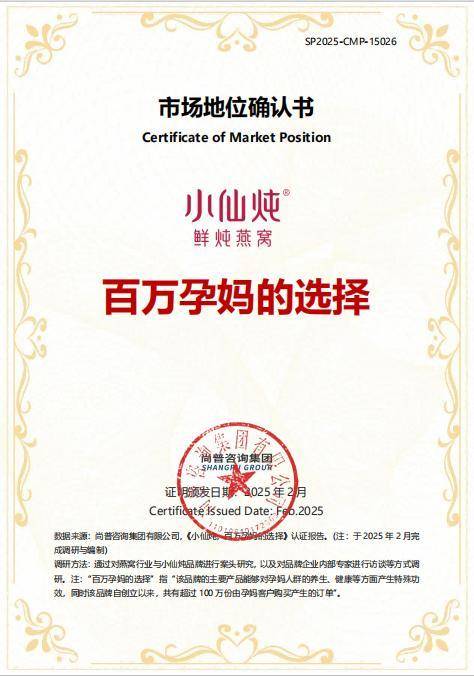 连续8年鲜炖燕窝销量第一、孕期滋补品市场份额第一、百万孕妈的选择、中国食品工业协会科学技术奖……众多荣誉背后,是小仙炖对孕期母婴滋补需求的深度洞察。孕中期是胎儿发育的“关键窗口期”,选择小仙炖鲜炖燕窝,不仅是为孕妈补充营养,更是为胎儿大脑、器官发育等搭建科学的“营养护城河”,让每一份滋养都精准助力宝宝的健康未来。