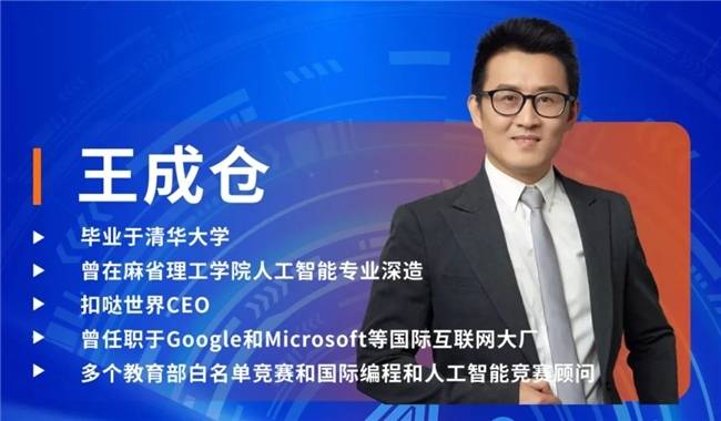 •王成仓(清华背景):毕业于清华大学、曾在麻省理工学院人工智能专业深造,现任扣哒世界CEO,讲座主题为“计算机人工智能行业,学业和职业如何规划”,通过真实信奥特长生升学案例,拆解科技特长生培养路径。