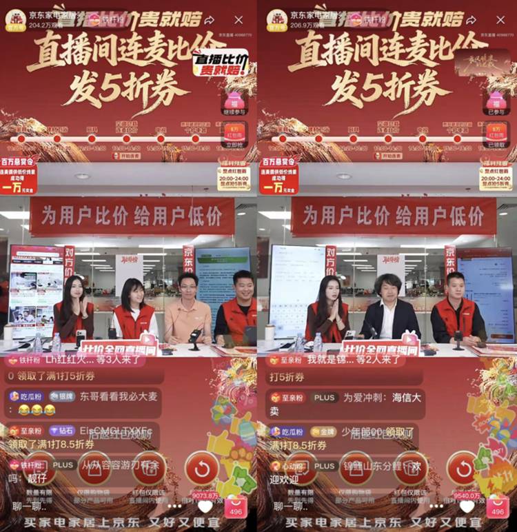 品牌高管做客直播期间,若用户连麦比价的是对应品牌商品,如京东自营价高,则提供低价线索的用户在获得1万元京豆奖励的同时,品牌高管还将加磅赠送万元福利,以及发放限量5折爆款,用实际行动力挺京东为用户比价。现在就可打开京东App搜索“家电家居采销”,蹲守直播间申请连线提供比价线索。
