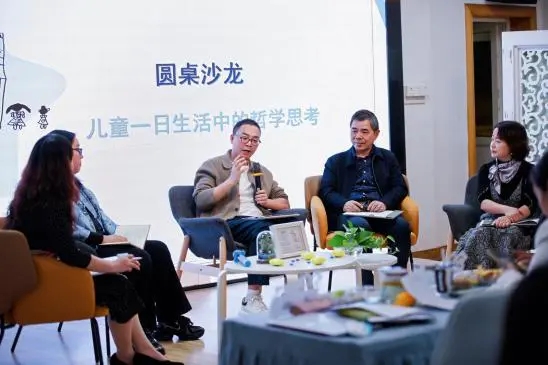 在实践分享环节,星辰幼儿园园长章瑛系统介绍了将“一顿美味大餐”“一个种子包”等生活场景转化为“哲思实践场”的探索路径。张笑言老师讲述了孩子们在孵化芦丁鸡的过程中,面对“帮还是不帮”“占有还是成全”等伦理选择,展现出对生命的尊重与思考;俞敏老师则分享了一个牛奶盒引发的关于“公平”“价值”与“创造”的深度讨论;庄雪妍和周文老师分别从“择豆标准”和“地球减负”等议题出发,呈现了儿童如何从被动接受走向主动建构,逐步形成自己的判断与责任意识。