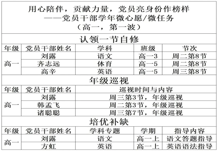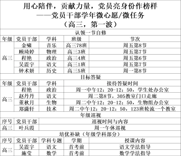 以下为具体工作(高一高二党员至少选择两项,高三党员一项必选+至少一项自选)