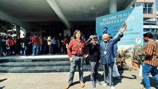 (2019年,邢新彦与著名导演谢飞、傅靖生在第24届喀拉拉邦国际电影节)