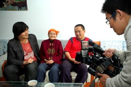 (2010年,邢新彦拍摄《草原母亲都贵玛》时与“人民楷模”都贵玛在一起)