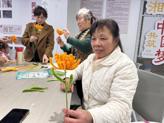 在大家专注手工的同时,来自义桥派出所的王警官巧妙地融入了反诈知识讲解。他借助居民手中的扭扭棒作品进行生动比喻: