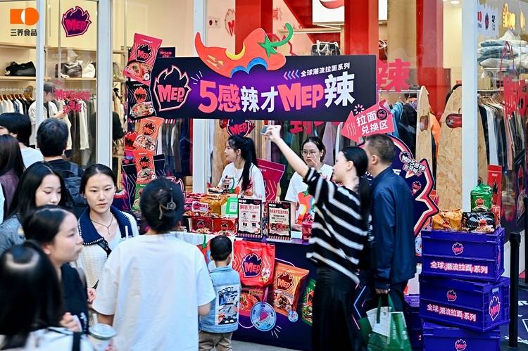 校园渠道方面,三养食品通过多元活动实现深度触达:品牌联合天猫校园发起全国高校快闪,覆盖北京、深圳、成都等21座城市的顶尖高校,通过试吃炸酱面互动引发排队热潮;MEP拉面系列以“五感辣”为核心概念,启动全国高校巡回路演,席卷12座重点城市,通过“MEPI人格测试”等创新互动,将辣感体验转化为可分享的潮流事件;更早之前,三养食品还曾与乳品巨头伊利达成合作,将火鸡面与伊利泡面芝士条进行创意搭配,进入全国五座城市的十所高校,通过试吃活动深化品牌在年轻群体中的影响力。
